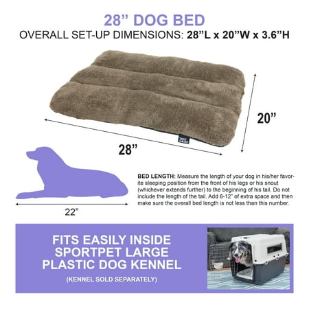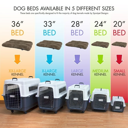 You may not let your furry sidekicks on all the furniture in the house, but they deserve to take it easy as well, right? Sport Pet waterproof dog beds are snuggly soft and cushioned for all day comfort, with a skid-proof and waterproof base to keep the occasional accident contained. Plus they are perfectly designed to fit inside your Sport Pet dog kennel (sold separately). Even better? The bed is 100% machine washable, just one more way Sport Pet is looking out for the pet lover’s day. Sizing note: for best fit, measure your pet in his or her favorite sleeping position, measuring from snout to base of tail. Add 6-12” to the number for the minimum length bed you’ll need. Then just consult our handy chart. Warning: do not allow children to play with or near this item. This is not a toy for children. If product becomes damaged please discard immediately. This product is designed for a specific and intended use. Do not use this product for anything other than its intended use.