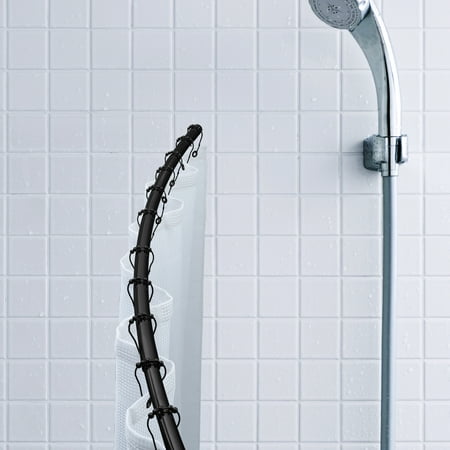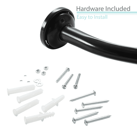 Upgrade your bathroom decor with this elegant Bath Bliss Curved Shower Rod with Matte Black Finish. This high-quality mounted pole installs easily in most standard showers, tubs or closets. It provides 33-percent more space than a straight bar and has a rust-resistant finish. This curved shower curtain rod comes complete with hardware for a quick and easy installation. Water and Rust Resistant