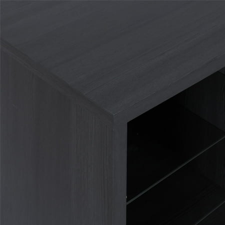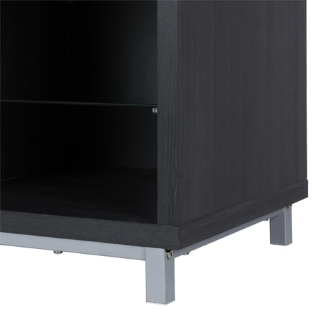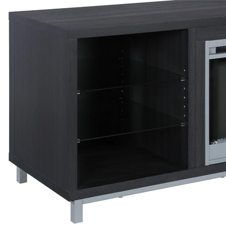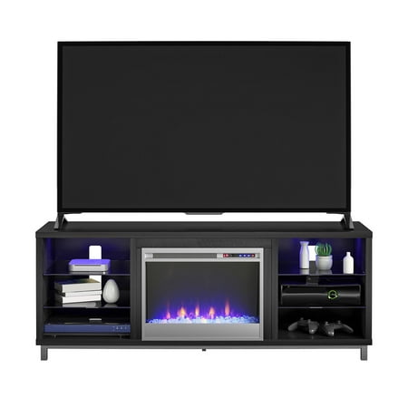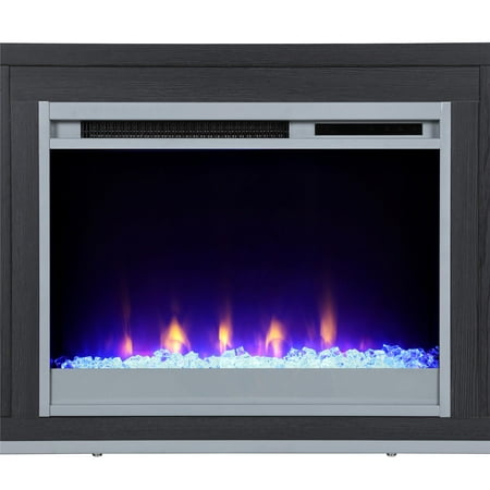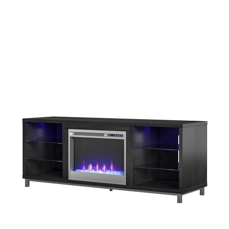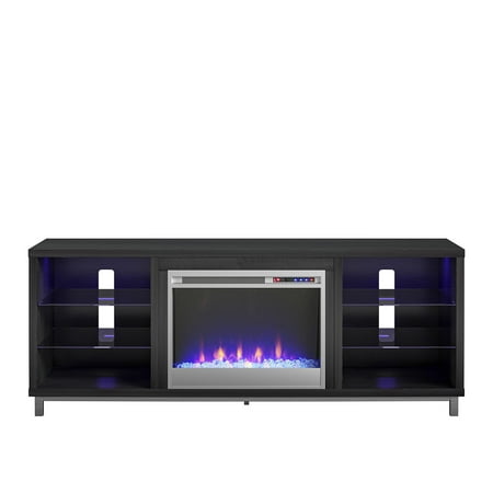 Step away from the ordinary and give your living room a modern makeover with the Ameriwood Home Lumina Fireplace TV Stand. Don’t let the simple look fool you, this stand comes with a 23” electric fireplace insert with all the bells and whistles. Ready to warm up a 400 square foot room with the touch of a button, you can relax knowing that timers will take care of the rest. If you want to simply enjoy the look of the flames without the heat use the included remote to switch off the heat option and pick your flame brightness. The fun doesn’t stop there though. On either side of the fireplace insert are three shelves, 2 glass, that hold your entertainment components like gaming systems, a DVD player, remotes and more. Both of the side shelves are ilFendallted with lights to coordinate with the glowing fireplace. This Fireplace TV Stand has a mix of black woodgrain laminated particleboard, MDF and hollow core construction with metal feet and tempered glass shelving. Combined together this stand makes for a very sturdy addition to your room. The top can hold up to a 70” flat paneled TV with a maximum weight of 120 lbs. Two adults are recommended to assemble this Fireplace TV Stand. After assembly, the stand measures to be 24.875”H x 64.75”W x 18.875”D.
