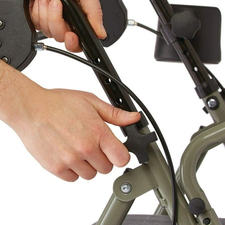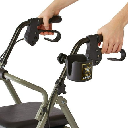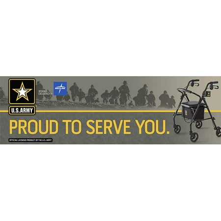 Choose the camo color rolling walker that helps provide support for independent walking, as well as support for the families of U.S. Army personnel. This Medline Rolling Walker features a rugged easy-fold steel frame for all types of terrain. Other quality details include simple height adjustments, locking brakes, a nice padded seat and back support, plus a big roomy storage compartment for everything you need to carry along. Your purchase of officially licensed U.S. Army merchandise helps support service members and their families.