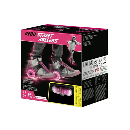 Revolutionize your favorite pair of shoes instantly with the Neon Street Rollers. Neon Street Rollers mark a new beginning for roller skating. No longer are you confined to traditional roller skates; you can personalize your own look so your Neon Street Rollers can match each unique personality with its easily transferable clip-on nature. Simply adjust, strap in and go! Featuring innovative wheel technology, the LEDs within the wheels light up as the wheels turn (no batteries required!), emitting a neon glow that will leave others trailing in your dust. No batteries are required to see this amazing effect!