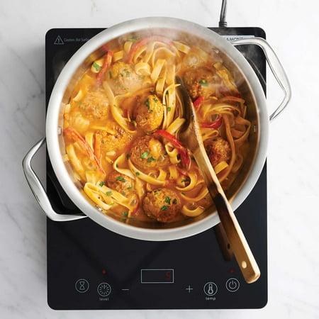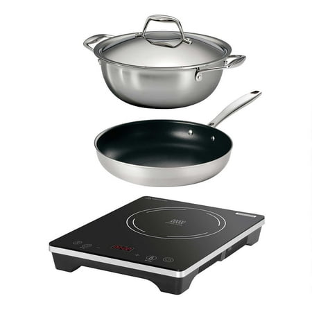 Tramontina 4 Piece induction cooking system is an energy efficient way of cooking that is quick, safe, clean, and allows for precision heating control. This set comes with a portable induction cooktop and compatible cookware that is made of premium stainless steel, featuring a tri-ply clad construction, which makes the set ideal for induction cooking. Product Features: Cast Stainless Steel Handles — Riveted (Cookware) Compatible with all Cooktops (Cookware) Oven-Safe up to 450°F/232°C (Cookware) Dishwasher Safe (Cookware) Uses Standard 120V Power Source (Induction Cooktop) Level and Temp Modes Provide Versatile Cooking Functionality (Induction Cooktop) Timer Tracks Cooking Progress (Induction Cooktop) Overheat Protection (Induction Cooktop)Accessories Included: Induction Burner 10 ” SS Nonstick Sauté Pan 4 QT Covered Universal Pan(All cookware pieces are Tri-Ply Clad Stainless Steel – Induction Compatible) Dimensions & More Info: 14.57” x 11.42” x 2.17” - Cooktop 5.15 Lbs - Cooktop 1800 Watts