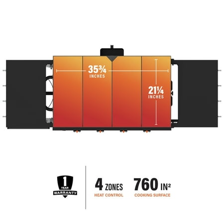 Show off your cooking skills with the Blackstone 36" Griddle Cooking Station, now featuring the Blackstone Omni Griddle Plate. This large griddle with four independently controlled cooking zones is just what you need for your backyard parties, barbecues, and campouts. The propane-fueled Blackstone 36" Griddle gives you 768 square inches of cooking space for the best griddling experience. On top of that, this griddle provides you with four independent cooking zones so you can cook everything at the same time at different temperatures. The new and improved Omni griddle plate has a patented design that heats your cooktop surface more evenly than ever before. Extra features include the side shelves that are designed specifically with your Blackstone griddle tools in mind, featuring tool hooks and a magnetic toolbar so all your Blackstone accessories are within easy reach. NOTE: This griddle is not compatible with the current Blackstone natural gas conversion kit.