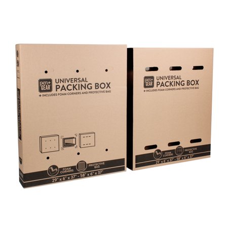 One size can fit several different household items with this Pen + Gear Universal Packing Box (sold with one protective bubble roll and 4 foam corners). This box is ideal for moving or storing large items like flat screen televisions, mirrors, framed wall art pieces, and more. Use the protective bubble roll and 4 foam corners (included) to protect your television or art from scratches, dust and other damages during a move or when in storage. This box is easy to assemble and is adjustable to fit many different sized items. When fully nested, the box measures 29” x 6” x 37” on the small side, and can be adjusted larger up to 58” x 6” x 37” for larger items. This box is equipped with hand holes for easy carrying, and boasts a built-in tabbed locking mechanism to secure the 2 sides of the box together. The box comes as two separate pieces that slide together over the opposite ends of the television, framed art piece, or mirror. Assembly instructions are included on the box.