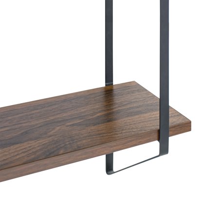 Display your favorite frames and decorative accents with the Better Homes & Gardens 20" 3 Tier Shelf with Brackets. This Better Homes & Gardens 3 Tier Shelf features a walnut woodgrain finish on the three shelves and matte black brackets that works in just about any type of room decor. It's a perfect addition to your entryway, family room, or bedroom. Included are 3 walnut finish shelves and 2 black metal brackets. Comes ready to assemble with instructions and all hardware to attach the shelves to the brackets and hang on the wall. When fully assembled this Better Homes & Gardens 3 Tier Shelf measures 20 in. L x 5 in. W x 23 in. H. Constructed out of durable medium-density fiberboard and metal, the 3 Tier shelf can support up to 10 pounds.
