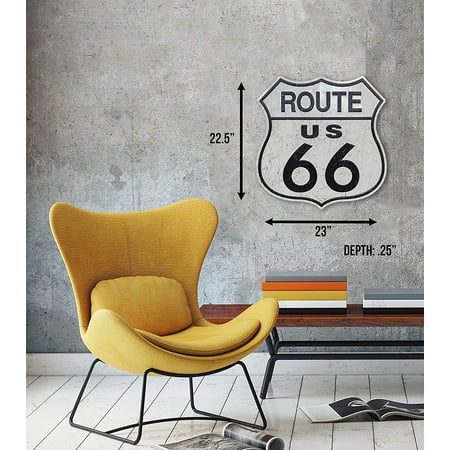 Our signs are made of the highest quality products available including UV resistant inks. Our products are licensed and we stand behind the quality with a 100% satisfaction guarantee. We use UV resitant inks and print directly on aluminum, as a result, you will enjoy your purchase for years to come. This large embossed Route 66 sign is a great way to spruce up your garage or man cave.