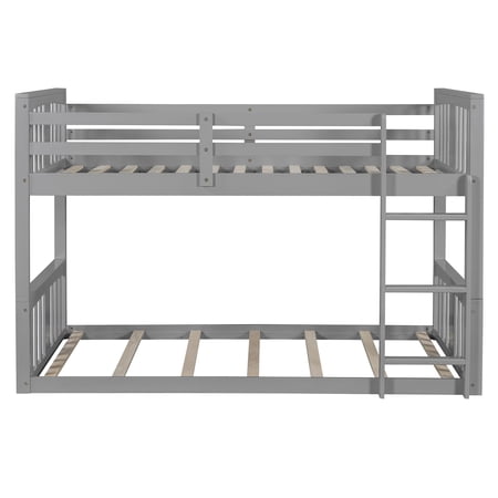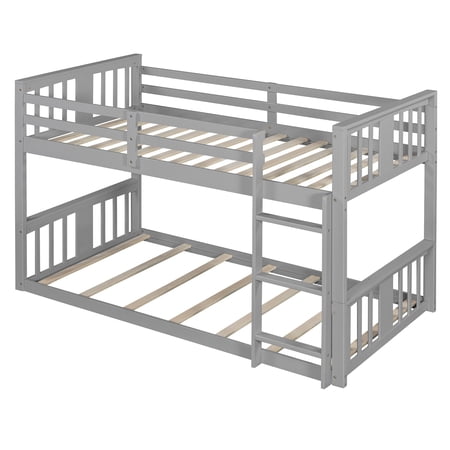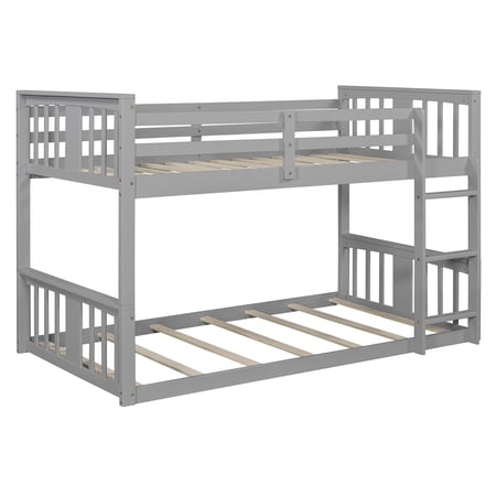 Solid Wood Bunk Bed for Kids | Space-Saving, Sturdy & Stylish Sleeper Solution Give your child’s bedroom a functional upgrade with our Solid Wood Bunk Bed for Kids—crafted to prioritize safety, durability, and smart space optimization. Perfect for shared rooms or cozy spaces, this bunk bed combines timeless design with practical features to grow with your family’s needs. Weight & Dimensions: Overall Product Dimension: 79.9" L x 41.3" W x 51.2"H Detail Product Dimension: Please refer to the Size image Number of Package: 1 Overall Product Weight: 108.64 LBS Weight Capacity: Upper bed: 250LBS; Bottom bed: 250LBS Recommended Mattress Thickness: 6" Recommended Age: >6 years old Specifications: Product Type: Twin over Twin Bunk Bed Size: Twin over Twin Color: Gray Product Material: Plywood + Pinewood Number of Slats: Upper bed: 14; Bottom bed: 7 Box Spring Required: No Mattress Included: No Suggested Number of People: 2 Notes: Manual measurement has been used; there may be some reasonable error. Actual samples take all the pictures; slight chromatic aberration may occur due to lighting or display.