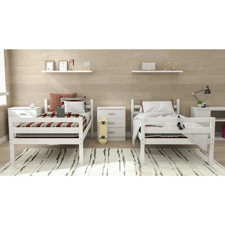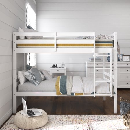 Sweet dreams start right here in the Campbell Twin over Twin bunk bed by HH2 Home Essentials. Whether your goal is creating more space in your child’s room, or just more space for sleepovers and story time, this low profile bunk bed will be a perfect fit. Featuring the strength of solid hardwood, the safety of included slat kits and two guard rails, the convenience of a space efficient easy to climb four rung ladder, your choice of four versatile finishes, and the charm of a classic plank design, you can’t beat this buy. Additionally, for maximum versatility, these beds can be unstacked to transform into two separate free standing twin beds. Each piece is built from sturdy, built-to-last materials. Ships in one box. Adult two person assembly required.