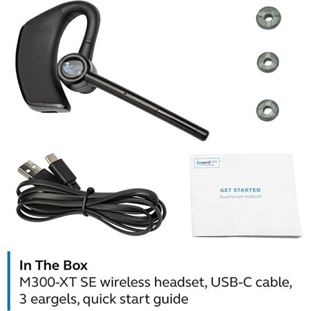 The BlueParrott M300-XT SE Bluetooth driving earpiece headset is designed for superior calls in high-noise environments. Featuring 80% noise cancellation with 2-mic tech, our earpiece for drivers provides 14 hours of talk time on a single charge for those who work long shifts. Our ultra lightweight earpiece weighs just 0.7 oz., making it an excellent option for those who work on the road delivering packages, food delivery drivers, taxi drivers, ride-share drivers, limo drivers, and anyone who drives for a living. In addition, our driving headset earpiece is reversible so that you can wear it on whichever side you prefer. With a wireless range of 300 feet (100 meters), our blue tooth headset for work ensures you can leave your phone in your vehicle as you're dropping off orders, ideal for local truckers, remote workers, or anyone on-the-go. Our hands-free call earpiece with mic provides IP54-rated protection against dust and water, making it a rugged and comfortable accessory for your work mobile phone. And while you're on the road, you can instantly mute calls, speed dial a preferred contact, or Push-to-Talk with your colleague using our customizable BlueParrott Button. Simply program it with your most-used function for instant access without taking your eyes off the road. The wireless earpiece pairs with up to 8 devices, with 2 simultaneous connections, and provides 420 hours of standby time.