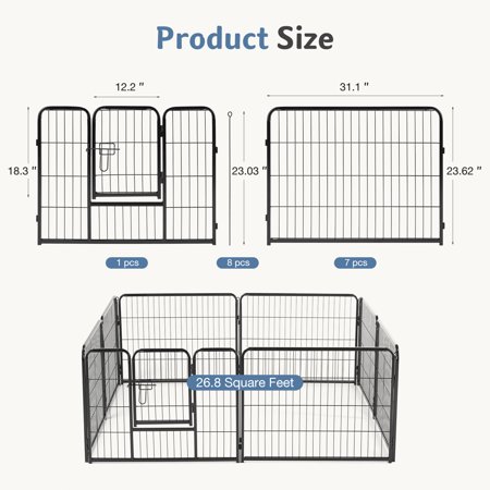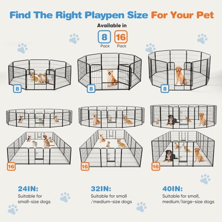 ·Give your beloved pet the freedom to play safely with the EDX Dog Playpen—your all-in-one solution for pet containment indoors and outdoors! Whether you’re a new puppy parent, a frequent traveler, or simply need a secure space for your furry friend, this playpen combines versatility, convenience, and durability to meet all your needs. D·esigned with both pets and owners in mind, this playpen offers unmatched flexibility. Choose from 8 or 16 panels to create a space that fits your home or yard, and select the perfect height (24"/32"/40”) for your pet’s size. The foldable design makes setup a breeze—no tools needed—and storage is effortless, taking up minimal space when not in use. Take it camping, to the park, or on your next RV trip, and let your pet explore their safe zone while you relax. ·Whether you’re training a new puppy, keeping your pet safe while you’re away, or just giving them a dedicated play area, the EDX Dog Playpen is the perfect choice. It’s not just a fence—it’s a comfortable, secure space where your pet can play, rest, and feel at home, no matter where you are. Order yours today and experience the convenience and peace of mind that comes with a reliable pet playpen!