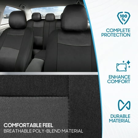 BDK PolyPro Car Seat Covers Full Set in Charcoal on Black – Front and Rear Split Bench for Cars, Easy to Install Cover Set, Accessories Auto Trucks Van SUV