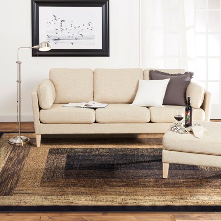 Embellish your hardwood floors with the Royalty Vega rug collection. Inspired by mid-century modern style, this rug collection features a layered rectangle design with a distressed appeal in black and beige hues. Well-constructed of heat set polypropylene, this rug repels stains while its soft fibers feel pleasant to your bare feet. Durable jute backing ensure to protect your floors from everyday wear and tear. Suitable for high traffic areas in the home.