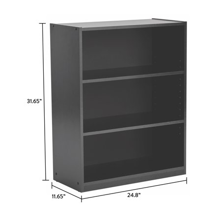 Add the sleek Mainstays 3-Shelf Bookcase with Adjustable Shelves to any room for a functional and stylish look. This sturdy storage unit has a closed back design with one fixed shelf that holds up to 50 lbs, and two adjustable shelves that support up to 35 lbs each. Quick and easy to assemble, this attractive bookshelf is a useful storage option for any office, living room, family room, den and more. At 31" tall the Mainstays 3-Shelf Bookcase is perfect for small and medium rooms where smart, efficient storage is needed. The adjustable shelves accommodate everything from paperbacks to large folios, perfect for small libraries and collections.