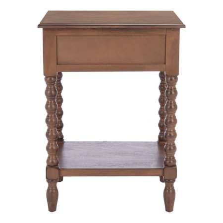 SAFAVIEH Athena Accent Table Brown Classic farmhouse charm meets contemporary d�cor in this Athena Accent Table. Athena�s modernized ball turned legs are beautifully highlighted by its rich brown finish, while an open bottom shelf and slim drawer provide ample storage and display space. For over 100 years, SAFAVIEH has set the standard for finely crafted rugs and home furnishings. From coveted fresh and trendy designs to timeless heirloom-quality pieces, expressing your unique personal style has never been easier. Begin your rug, furniture, lighting, outdoor, and home decor search and discover over 100,000 SAFAVIEH products today.