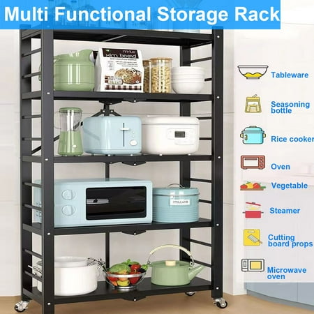 Storage Shelf,Storage Rack,Shelving Unit,Storage Shelves, Wire Shelving Unit,Shelving Racks,Heavy Metal Shelf,Foldable Storage Shelf,Kitchen Shelf 5-tier storage shelves (with a big size of 27.95x13.39x62.99inch) 18mm steel pole can hold up to 397lbs/180kg 4 wheels with 360° rotation Specifications: Material: Carbon Steel Color: Black Shelf Load Weight: 397Lbs Size: 27.95x13.39x62.99inch 360° movable wheels:4 Quantity: 1Pcs Occasion: Home, Office, Garage Package Contents: 1 x 5-Tier Wire Shelving 4 x Wheels 【Strict Quality Control】Storage shelf are manufactured with strict quality control standards. Each foldable storage shelf and its components undergo extensive testing for optimal performance and to pass laboratory performance tests. As long as you use our foldable storage shelf, we are responsible for you. If you have any questions, you can always contact us. All of this is just to give you a better shopping experience.