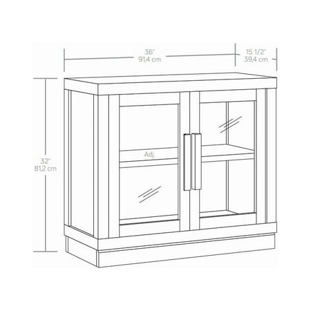 The Better Homes & Gardens Ezra Accent Cabinet presents a modern display cabinet that offers an effortless infusion of style into any room of the home. Create versatile storage and display options in the living room, dining room, entryway or kitchen with the modern geometric design of this utility wood accent cabinet. Behind its set of framed, safety-tempered glass doors with soft-close hinges, this fashion cabinet provides an adjustable, spacious shelf. Along with the bottom shelf, the display area is ideal for showcasing a prized collection of antiques, vintage China, or photos of family and friends. This living room storage cabinet has a strong and lightweight 2-inch panel construction and built-in adjustable base levelers so that it is durable yet versatile in any living space. Finished in the hues of a Rich Black finish, with modern, geometric hardware, this Better Homes & Gardens Ezra Accent Cabinet with glass doors offers an updated version of a home storage classic.