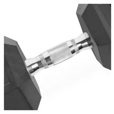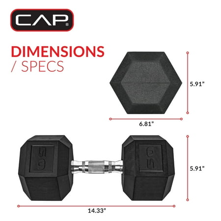 Enhance your workout routine with the CAP Barbell Coated Hex Dumbbell. This sturdy dumbbell is a premium quality weight that's ideal for home use. Made of solid cast iron with a protective black coating, it features an easy-to-grip handle and encased heads to prevent damage to floors. The ergo designed handle helps to reduce hand fatigue and maximize comfort, while the knurling prevents the dumbbell from slipping during workouts. The Hex shaped dumbbell heads ensure the dumbbell will not roll when set down, avoiding injuries and allowing for easy storage. Dumbbells can be used to exercise all major muscle groups, including arms, chest, back, abs, legs and core. Making them perfect for a full body workout. Sold individually.