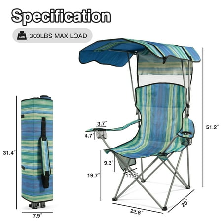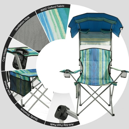 FlexWave Folding Camp Chair,Portable Outdoor Chair,with Shade & Cup Holder,for Camping, Beach, Fishing, and Sports Events