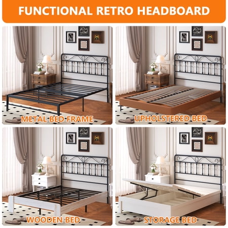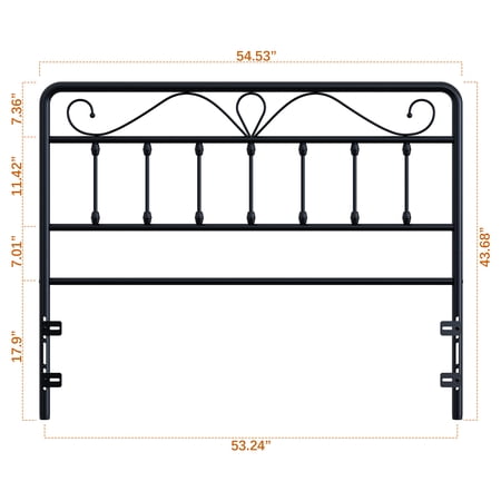 Our Alden Designed vintage headboard that makes your bedroom filled with ambience of literature and art. You could see the metal headboard with traditional farmhouse style and playful mustache design fit for any room and bed décor. The black finish and sturdy metal construction ensure long-lasting support. Available in Full and Queen sizes, this headboard offers three height adjustments for your perfect fit. Assembly is easy, making it a seamless addition to your beloved bed.