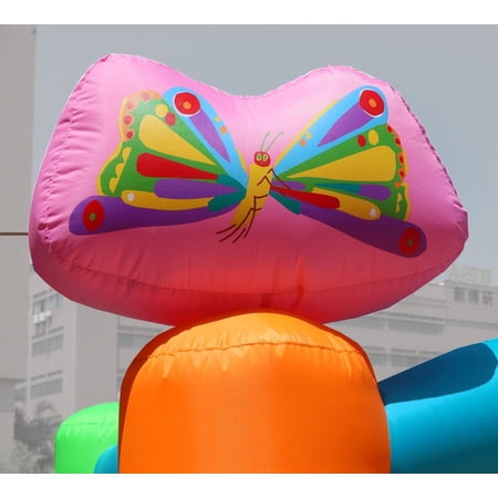 Bring the magic of Eric Carle's classic story to life with the Backyard Kids The Very Hungry Caterpillar™ Bounce House and Slide Combo. This officially licensed inflatable captures the spirit of The Very Hungry Caterpillar™ with colorful artwork, playful fruit details, and a cheerful caterpillar theme that inspires imagination and movement. Perfect for younger children, this inflatable combo features a large bounce area, dual slides, and a mini ball pit for endless ways to play. Measuring 11.8 feet long, 9.8 feet wide, and 6.9 feet high, it offers plenty of room for up to four kids ages 3-10, each weighing up to 75 pounds (300 pounds total). The bounce zone measures 4.7 feet by 4.2 feet, and the slide has a seated height of 3.8 feet;perfect for safe, supervised fun. Built to last, this bounce house is constructed from 840D heavy-duty nylon for the jumping and sliding areas and 420D fabric for the sidewalls and inflation tubes. The finger-safe mesh netting provides full visibility for parents and excellent airflow inside the unit. Water-resistant, flame-resistant, lead-free, and phthalate-free materials make this inflatable safe for both indoor and outdoor play. Setup takes just minutes with the included 750-watt blower. Once inflated, the bouncer stays firm and secure using the provided ground and blower stakes. When the fun is done, the lightweight 40-pound design makes it easy to deflate, fold, and store. Each set includes everything you need right out of the box - blowers, stakes, repair patches, 30 colorful plastic balls for the ball pit, a storage bag, and a detailed instruction manual. The Backyard Kids The Very Hungry Caterpillar™ Bounce House and Slide Combo is perfect for birthday parties, playdates, or everyday backyard fun. Designed for hours of active, screen-free entertainment, it turns any space into a storybook adventure. The inflatable includes a 90-day limited warranty, while the blower is covered by a 1-year limited warranty. Brand: Pogo Bounce House Product Line: Backyard Kids Official Licensed Product: The Very Hungry Caterpillar™