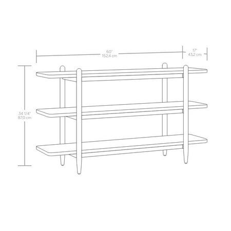 The Better Homes and Gardens Springwood Horizontal Bookcase is a stylish and functional way to organize a living space with an open concept while adding a touch of tropical style. It's designed to display cherished items while providing ample storage space for books, framed photos, and collectibles. With 1-inch thick shelves and a durable construction, this 3-shelf bookcase is built to last. Plus, it's finished on all sides for ultimate versatility and can be placed anywhere in any room. This open-shelf bookcase is perfect to be used as a room divider, against a wall, in a corner, or even as a console table behind the sofa. The solid wood legs of this open bookshelf come with adjustable levelers to ensure stability on any surface. The charcoal finish adds a cool and elegant touch to any home decor, making this modern bookshelf a beautiful addition to any room. Elevate any room with the Better Homes and Gardens Springwood Horizontal Bookcase.