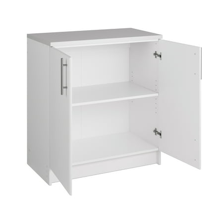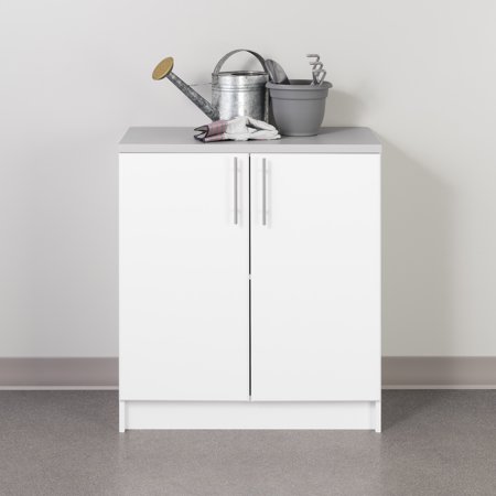 The Prepac Elite Home Storage White Base Cabinet with Melamine Countertop is the perfect addition to your laundry room, workshop or garage. The 1 in. thick grey melamine countertop provides a durable work surface that will last through all your projects. With one adjustable shelf, this cabinet will accommodate anything you need to store in it. Combine it with other pieces in the Elite Collection for a customized workspace.