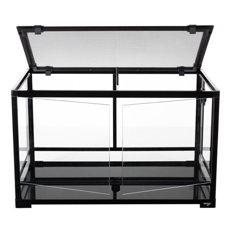 Glass terrariums are the preferred choice of professional Herpetologists. They offer the best viewing for your animal; they are suitable for damp and humid conditions, are hygienic and easy to clean. Glass also maintains the correct heat gradient more safely and easily – maintaining the correct heat gradient is critical to a reptile’s and amphibian’s well-being as they use external heat sources in their environment to regulate their body temperatures. In the wild these animals move around within their habitat (from sunlight to shade, or from above ground to burrows, for example) to regulate their body temperature. If they get too cool, their metabolism slows (and in conditions that are too hot or too cold, they enter states of inactivity or hibernation). Maintaining the appropriate temperature is vital to bodily functions such as digestion. It is important to provide the proper temperature conditions in order for the animal to grow and thrive. For many reptiles, it is not simply a matter of providing a constant temperature, however. They require a thermal gradient, or a range of temperatures from a high end to a low end. Thus, the animal can move to a higher temperature or lower temperature to suit its needs at any given time.