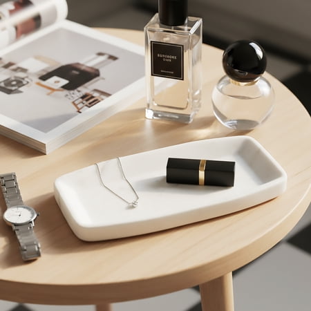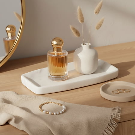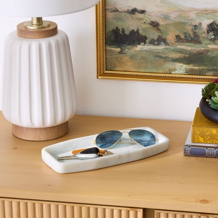 Add timeless style to your décor with the Better Homes & Gardens White Marble Decorative Tray, 11" Wide. Crafted from genuine marble with a smooth white finish, this elegant tray is perfect for accenting coffee tables, countertops, or shelves. Its versatile size makes it ideal for displaying candles, vases, or seasonal décor, while the natural stone material brings sophistication and durability to any space.