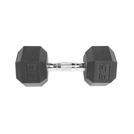 Enhance your workout routine with the CAP Barbell Coated Hex Dumbbell. This sturdy dumbbell is a premium quality weight that's ideal for home use. Made of solid cast iron with a protective black coating, it features an easy-to-grip handle and encased heads to prevent damage to floors. The ergo designed handle helps to reduce hand fatigue and maximize comfort, while the knurling prevents the dumbbell from slipping during workouts. The Hex shaped dumbbell heads ensure the dumbbell will not roll when set down, avoiding injuries and allowing for easy storage. Dumbbells can be used to exercise all major muscle groups, including arms, chest, back, abs, legs and core. Making them perfect for a full body workout.